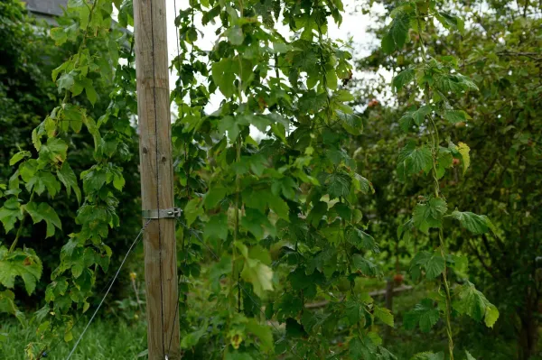 De hop werd in dit gebied geteeld in zogenaamde hopkuilen en langs hoge staken omhoog geleid. Om deze oude hophoven weer te introduceren in het huidige landschap, is er een organisatie met kennis en kunde ingezet. Op meer dan 15 locaties kun je nu hopstaken tegen komen. Ik heb er zelf eentje ontdekt, pal naast de molen.