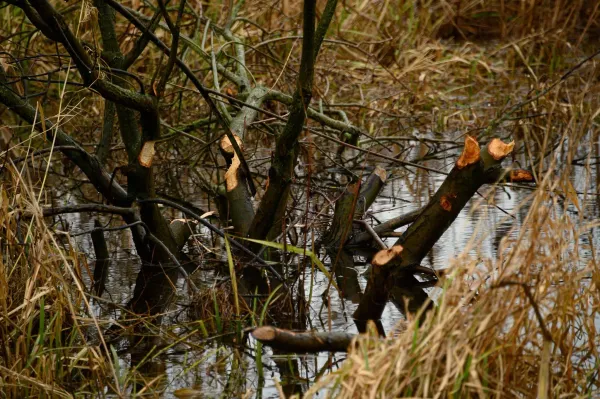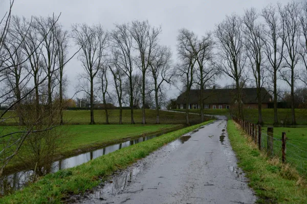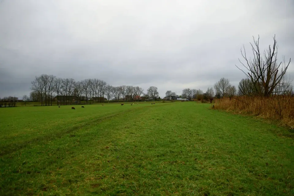 Samen met Ad en Fientje trek ik het gebied in. Ad de Bruin is een 'inboorling' van Wijk. Er zijn er momenteel nog ongeveer 500 weet hij te vertellen. Deze mensen bij elkaar nemen besluiten over Het Wijkerzand en dragen zorg voor de natuur. Een paar boeren laten er hun vee grazen waar de inboorlingen ieder jaar een envelop met de opbrengst voor ontvangen. Hij kent het gebied op zijn duimpje. We banjeren door het kletsnatte gras, zien beversporen en klimmen een terp op. Hier hebben we een mooi uitzicht over het terrein achter ons.