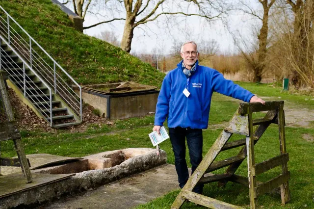 Verhalenverteller Prisca ontdekt de sporen van de Koude Oorlog en krijgt een rondleiding van vrijwilliger Arie Schouten op Fort Altena.