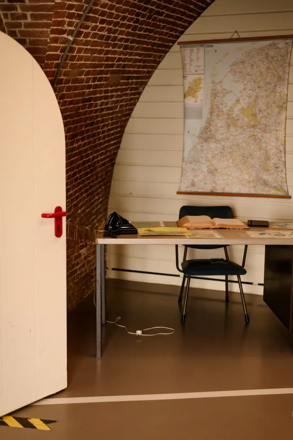 In de tijd van de Koude Oorlog was dit een basis voor de stay behind operatie Gladio. Berichten werden hier verzameld, gegevens opgeslagen en informatie doorgespeeld via de telefoon. Kijk maar eens goed naar de deuren. Dit past helemaal niet bij een oud fort". Ik zie typische jaren zestig deurklinken, de ronde vormen, de kleur. Het zou zo in een woning van vijftig jaar geleden passen. Maar om dit aan te treffen in een oud fort? Nee, dat had ik niet verwacht. "We hebben nog veel vragen, gaat Arie verder. Of we dat ooit te weten gaan komen? Ik heb geen idee. Alle documenten die hiermee te maken hebben, zijn nog steeds niet openbaar; dit archief is gesloten door de overheid.