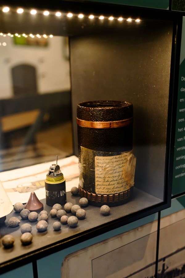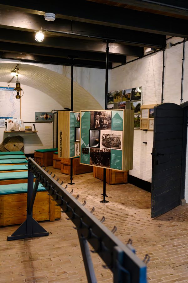 Een kruitkamer met dikke muren waar het buskruit werd gewogen en in zakjes verdeeld. Het aantal gram bepaalde de schootsafstand van het kanon. Om de kruitkamer heen loopt een nauw gangetje. Hier liep iemand doorheen om de lichten aan te steken. Centimeters dik glas beschermde het kruit tegen overspringende vonken van de lampen. We zien de vergaderkamers voor officieren en de ruimte waar een apotheek en ziekenboeg was. Zieke soldaten moesten in quarantaine en hadden daarvoor hun eigen latrines die afgezonderd waren van andere soldaten. Privacy was er amper, de wc's zijn niet meer dan een houten bak met een rond deksel. Schotten houden het ergste zicht van je buurman weg, maar als je aan de dunne was, bleef dat niet lang geheim. Gids Hans van Archeo-Altena houdt stil bij een vitrine die een hele muur beslaat. Op de glazen planken zien we opgravingen uit de regio. Veel vuurstenen zijn er te zien, maar ook speelgoed van kinderen en crematieresten. De scherven en aardewerken potten zijn ook van de partij.