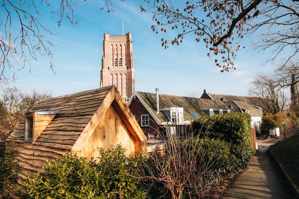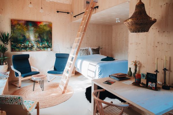Mark zie je terug in de architectuur en is de “poort”: het moderne, eigenzinnige ontwerp en het gebruik van CLT-hout geven het huis een warme, natuurlijke uitstraling. Dat het voor 90 tot 95 procent uit bio-based materialen bestaat, voelt niet als een statement, maar als een vanzelfsprekend onderdeel van het geheel. Het resultaat is een stijlvolle, toegankelijke B&B met een eigen ingang en tuin, ook geschikt voor rolstoelgebruikers.