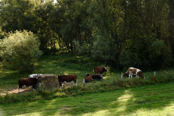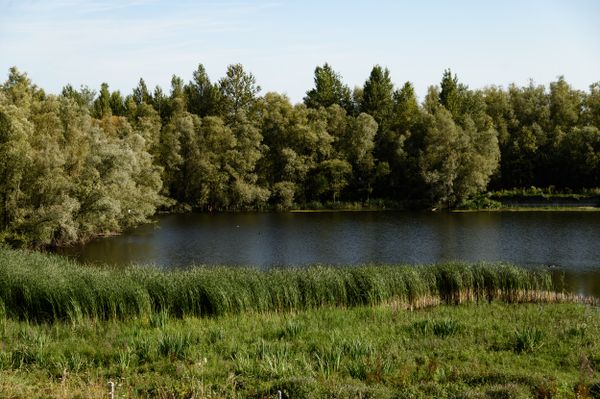 Dat de natuur hier vrij spel heeft, is te zien aan de vele libellen die laag voorbij vliegen. Soms blijft er eentje zitten op de lila bloemen van de watermunt. "Wat valt er hier te doen voor een beheerder?" vraag ik Kelly. "Regelmatig maken we hier onze rondes", legt ze uit. "We zorgen dat de paden gemaaid blijven voor wandelaars. Een kudde koeien zorgt voor verdere begrazing van de open stukken. Hekwerken worden gecontroleerd, na een storm is het belangrijk om te controleren op omgevallen bomen". Bij de laatste poel houden we stil. Aan de andere oever zien we een lage wal met ronde gaten. Turend door haar verrekijker valt ze even stil. "Deze wand is gemaakt om nestgelegenheid te bieden aan de oeverzwaluw. De ijsvogel zien we hier ook regelmatig". Vandaag hebben we het geluk niet aan onze zijde en moeten we genoegen nemen met futen en waterhoentjes.