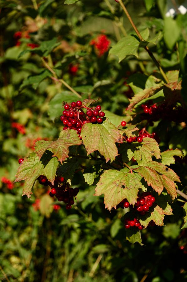 We klimmen de dijk weer op, Marly kwispelend voorop. Vanaf dit hoge punt heb je een uitstekend uitzicht over het gedeelte van de Struikwaard dat binnen de dijk ligt. "Sinds het onder ons beheer valt, doen we ons uiterste best om hier meer diversiteit te krijgen", zegt Kelly. Er is een groot project geweest om de patrijs te monitoren. Patrijzen zijn een goede afspiegeling van de diversiteit in de natuur. Gaat het goed met ze, dan is er genoeg te eten en zijn er genoeg schuilplaatsen te vinden voor andere dieren. De oneindige akkers zijn weg, opgesplitst in kleine weilandjes die worden omzoomd door hoge hagen. Deze hagen zijn zo aangeplant dat ze door de seizoenen heen een voedselbron zijn voor vogels en andere dieren. Eenmaal dichterbij zie ik de donkerrode bessen van de meidoorn glanzen tussen de bladeren. Ook de lijsterbes en Gelderse roos hangen vol met voedzame trossen bessen. Er staan rozen tussen die straks zorgen voor bottels waar de muizen dol op zijn. Boven ons horen we de roep van een buizerd. Zo zie je in een kort tijdsbestek het belang al in van de voedselketen.