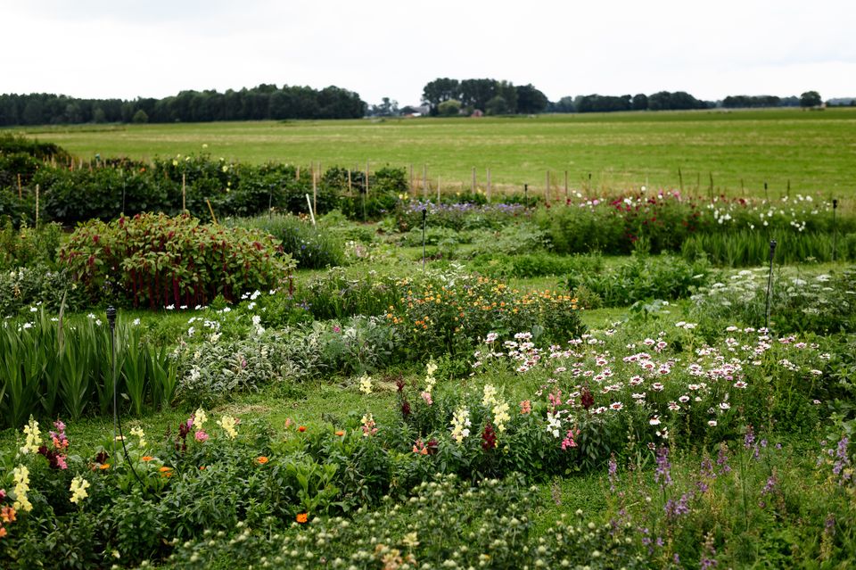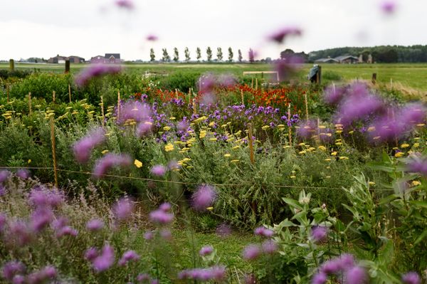 Je rijdt er snel aan voorbij, zo mooi verscholen ligt deze tuin. Als ik het lange pad af fiets, zie ik pas hoe ruim opgezet de pluktuin Waardhuizen is. Aan weerszijden van het pad staan bloeiende planten in keurige rijen opgesteld. De fiets kan ik kwijt bij de parkeerplaats, waar ook genoeg gelegenheid is om je auto te stallen. Op een bordje is te lezen hoe het hier in zijn werk gaat. Er liggen snoeischaren klaar en elastieken om je boeket bij elkaar te binden.