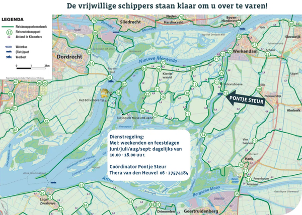 Voet- en fietsveer tussen Lage Zwaluwe en Nationaal Park de Biesbosch.
