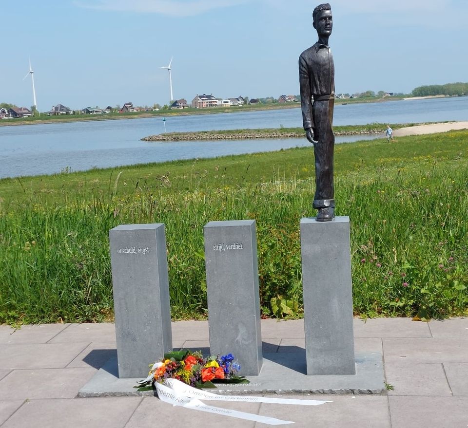 Het Monument 'De Line-crosser' in Werkendam is opgericht om twee verzetsmensen te herdenken die door de Duitsers zijn doodgeschoten: Arie van Driel en Kees van de Sande.