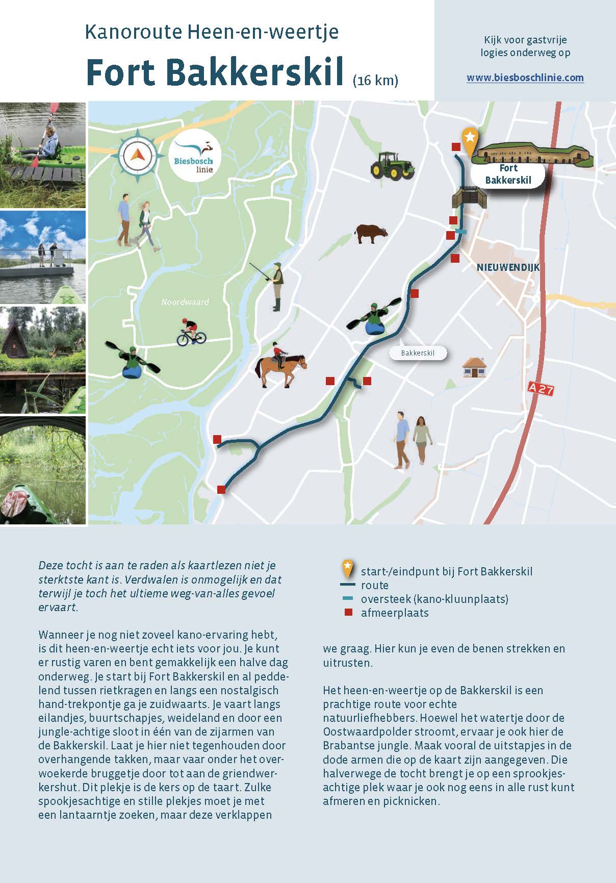 Wanneer je nog niet zoveel kano-ervaring hebt, is dit heen-en-weertje echt iets voor jou. Je kunt er rustig varen en bent gemakkelijk een halve dag onderweg. Je start bij Fort Bakkerskil en al peddelend tussen rietkragen en langs een nostalgisch hand-trekpontje ga je zuidwaarts. Je vaart langs eilandjes, buurtschapjes, weideland en door een jungle-achtige sloot in één van de zijarmen van de Bakkerskil. Laat je hier niet tegenhouden door overhangende takken, maar vaar onder het overwoekerde bruggetje door tot aan de griendwerkershut. Dit plekje is de kers op de taart. Zulke spookjesachtige en stille plekjes moet je met een lantaarntje zoeken, maar deze verklappen we graag. Hier kun je even de benen strekken en uitrusten.